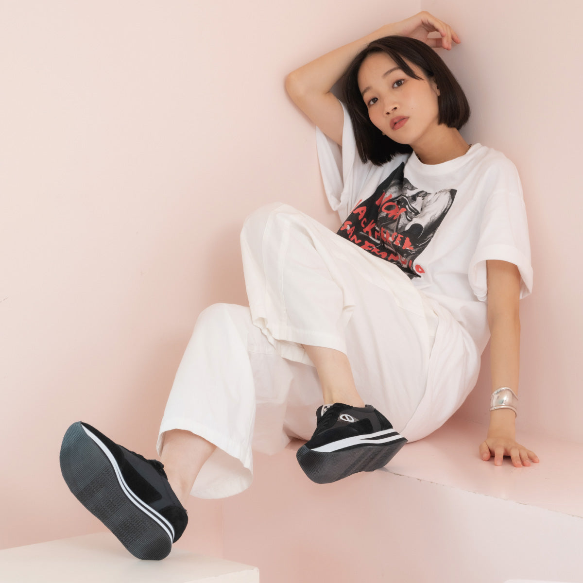 厚底ボーダーソールスニーカーFLEXファッショントレンドに敏感な本国フランスでも愛され続ける定番厚底スニーカー〈フレックス〉。年齢問わずどんなコーディネートでも合うデザインで、リピート率も高い1足。厚底でありながら抜群の安定感と軽量感が人気の秘訣。NO NAMEの厚底を初めて選ぶ方にも、ぜひお試しいただきたいおすすめモデル。