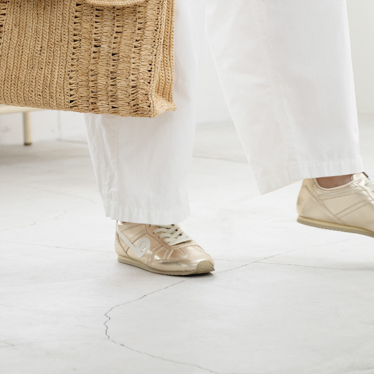 クラシックスニーカーEVO 新モデル〈エボ〉が登場。フラットソールのローテクデザインでレトロな抜け感を。 足もとをヘルシーに魅せるトレンドライクな1足。程よいシャイニー感で、どんなスタイルにも合わせられるアイテム。【替え紐付属】こちらの商品には替え紐が付属します。シューレースはお好みで付け替えてご使用いただけます。気分やコーディネートに応じてイメージチェンジにも!