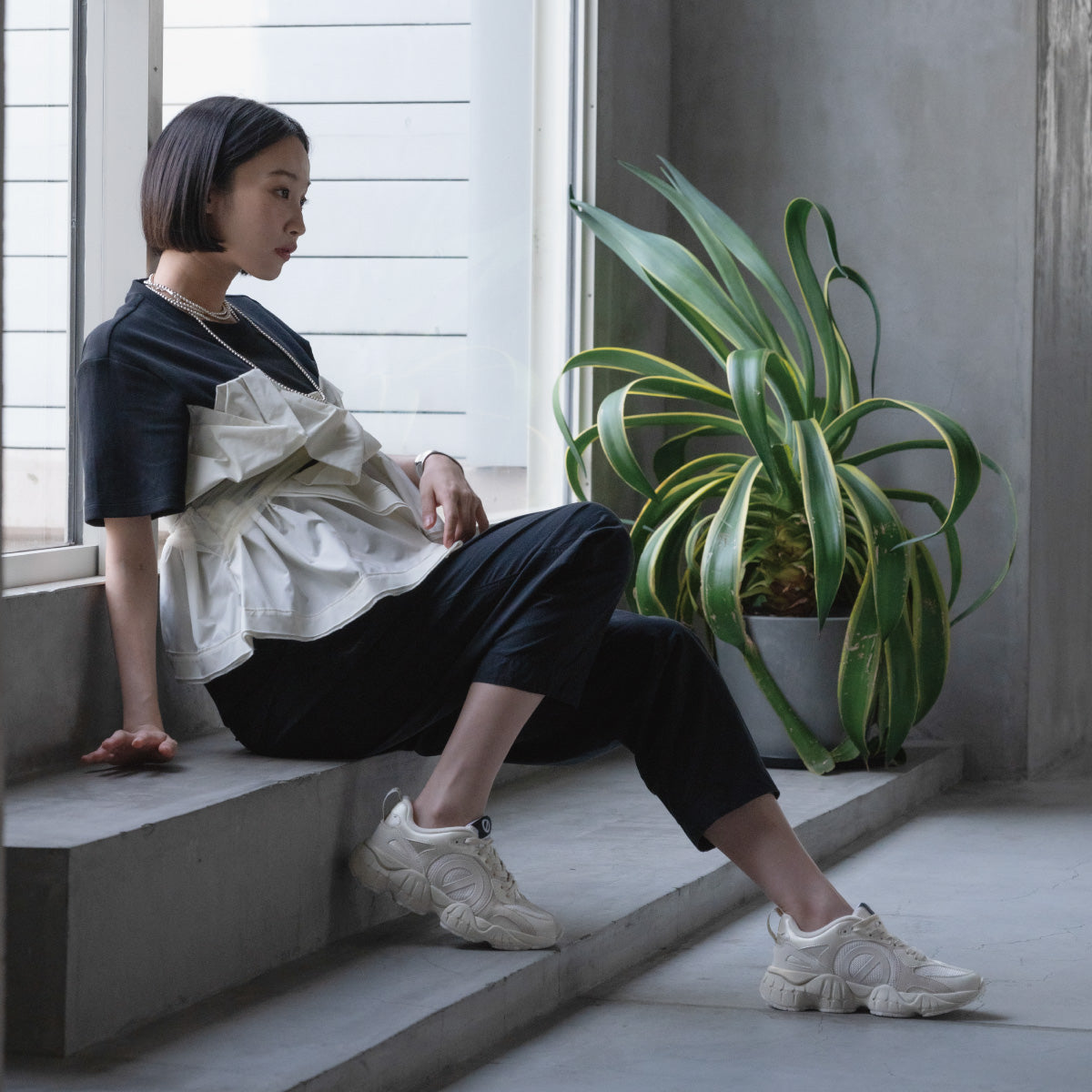 ソールにはクッション性と軽さを兼ね備え、履き心地も軽量感も抜群。アッパーはマテリアルMIXでトレンドライクなコーデにアップデートできるアイテム。