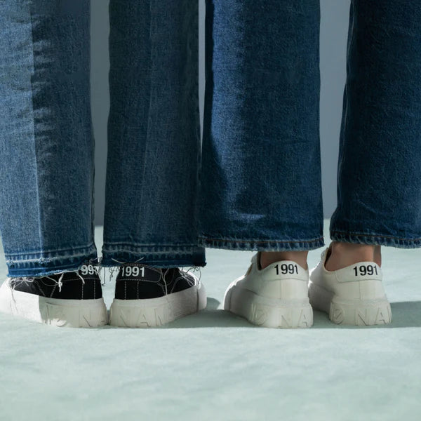 キャンバスプラットフォームスニーカーRESET NO NAMEのアイコンでもある厚底キャンバススニーカー〈プラト〉を、モダンにアップデートした〈リセット〉は、ブランドのこだわりが詰まった一足。 ベーシックなキャンバススニーカーに、チャンキーソールを組み合わせ、旬のボリューム感をプラス。 通気性に優れたコルクインソールとこだわりの厚底ソールが、心地よいフィッティング感とクッション性を高め、驚くほど快適な履き心地に。 環境に配慮した素材をセレクトした、人と地球にやさしいエコフレンドリーなスニーカー。
